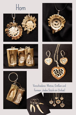 Elegantes Schmuckset Herzen aus Hirschhorn mit Silberfassung